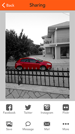Photos can be shared on Facebook, Instagram, Flickr and Twitter or send via email, message and AirDrop.