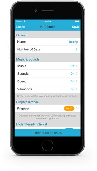 Workout Interval Timer Pro is simple but very flexible timer used for all kinds of trainings. It meets the needs of amateurs as well as professionals. Workout Interval Timer Pro has 4 different timer types. User interface is designed to be clear and readable from distance. For notification can be used vibrations, sounds and speech. No more looking at the screen to know current interval. Each interval has configurable name, duration, color and music. Music can be set also for whole timer.